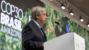 Guterres calls for a paradigm shift to meet the world's climate targets.