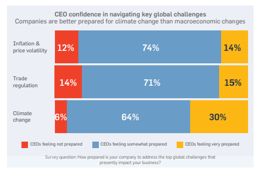 Eight in 10 CEOs plan to sustain sustainability investment despite financing gaps.
